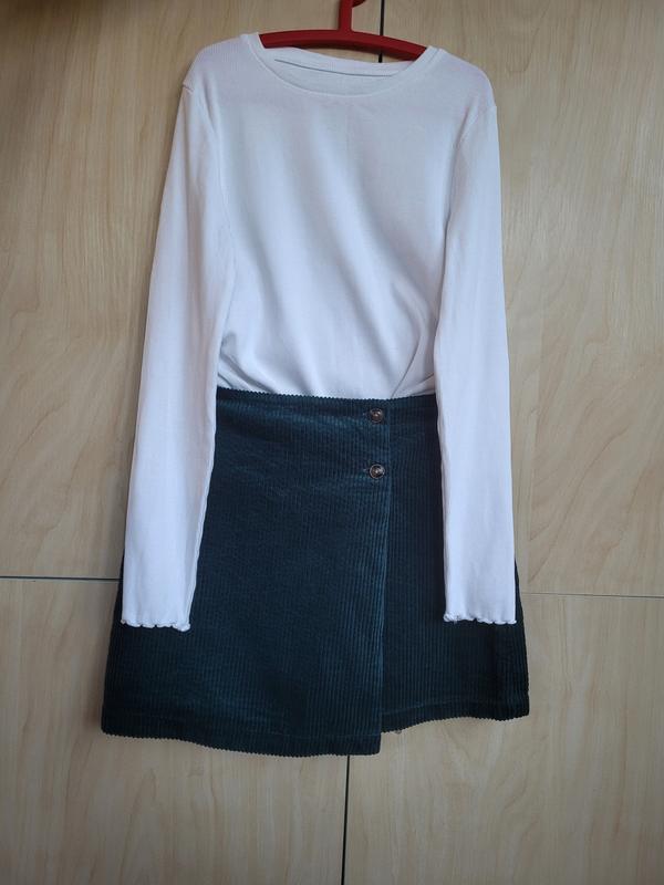 Реглан в рубчик + юбочка на 10-11 лет Реглан primark. 95% коттон 5% еластан . Пог 35. Рукав от плеча 52. Длина 50 Юбка next. Бирка с размером срезанная. Смотрите замеры. Пот 30. Есть утяжка. Длина 34 Состояние комплекта идеально