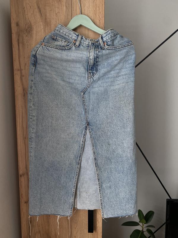 Красивезна джинсова спідничка розміру М з розрізом спереду. Без дефектів. Одягалась один раз.