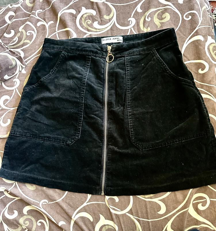 ✨ Стильна чорна спідниця від Gloria Jeans 🔸 Матеріал – вельвет (м’який, приємний на дотик) 🔸 Фасон – міні, зручна пряма посадка 🔸 Деталі – дві великі кишені спереду, металевий замок-блискавка на всю довжину з кільцем 🔸 Колір – класичний чорний (легко поєднується з будь-яким образом) 🔸 Розмір: M-L