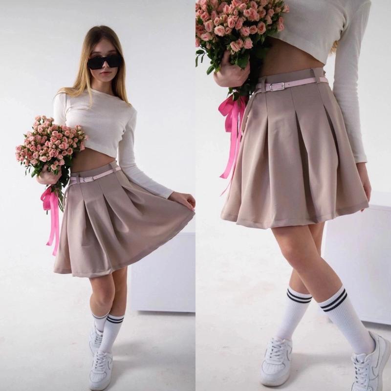 🚦РОЗПРОДАЖ🚦 Трендовая юбочка ткань тиар сбоку на молнии и пуговице сзади в талии резинка Ремень в комплекте КАЧЕСТВО СУПЕР! цена 710 грн НОВА ЦІНА 485 ГРН рост/длина/пот похибка+-2см 140/36/27-2шт 146/38/28-1шт ▪️N-15