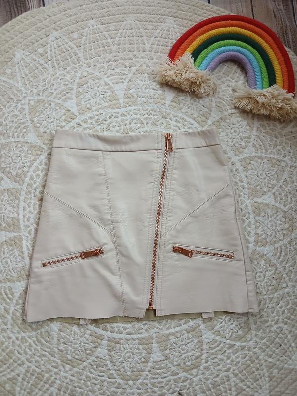 стильная юбочка под кожу.Размер 6р.Замочек рабочий по всей длине.Утяжки в поясе нет.Длина 31см,пояс 28см