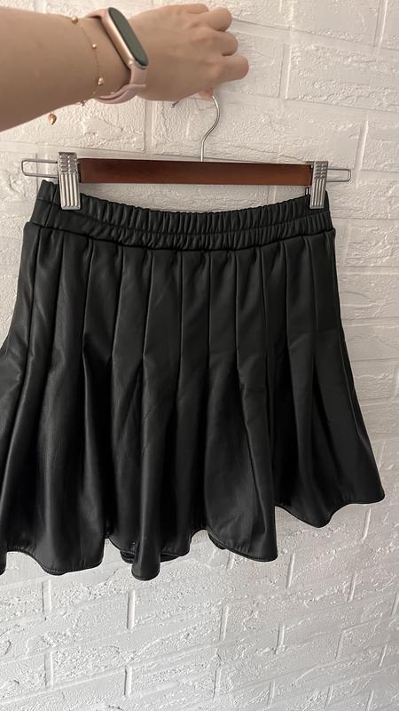 Спідниця під шкіру на флісі Колір: чорний Матеріал: еко-шкіра зовні, всередині м’який фліс Розмір: по талії 31 см (тягнеться завдяки резинці на талії до 40 см); довжина 39 см Стан: відмінний, без дефектів Модель: розкльошена, з легкими складками Довжина: міні / вище коліна 🖤 Дуже стильна та тепла — пасує для осені й зими. Добре виглядає з гольфом, светром чи oversize світшотом. Дивиться білий світшот до неї у мене в обʼяві.