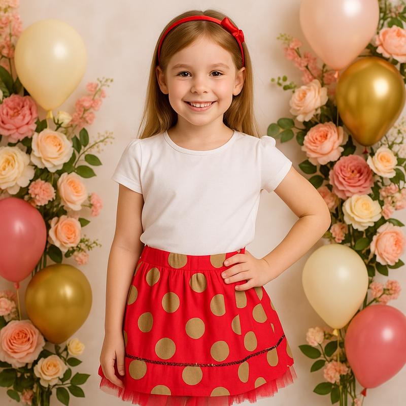Яскрава спідничка від NEXT для дівчинки віком 8 років (зріст 128 см). Виготовлена з якісної натуральної тканини (98% бавовна, 2% еластан), з підкладкою та фатином, який додає пишності. Ніжний червоно-рожевий колір із золотими горохами створює святковий, веселий настрій. Спідниця має зручну блискавку збоку та регульований пояс на ґудзику — легко підлаштовується під фігуру дитини. Ідеальний вибір для свят, фотосесій чи повсякденного носіння. 📏 Розмір: 8 років / 128 см 🌍 Бренд: NEXT 🏷️ Виробництво: Марокко 📏 заміри: • Довжина спідниці — 31 см • Талія (у спокійному стані) — 26 см × 2 = 52 см • Талія (у розтягнутому стані) — 30 см × 2 = 60 см • Стегна — 34 см × 2 = 68 см • Підкладка (фатин) — 5 см • Ширина по низу — 40 см × 2 = 80 см