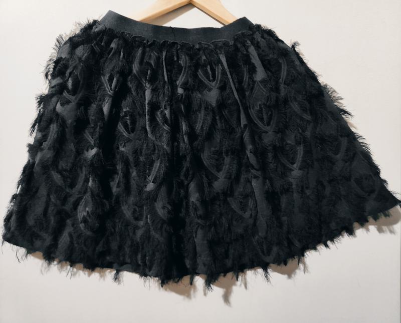 Короткая черная юбка H&M на резинке, стильная и пышная, интересная ткань, выглядит непревзойденно как для праздничных событий так и для повседневной жизни. Размер S Длина изделия 44 см Полуобхват талии 30см, пояс резинка тянется