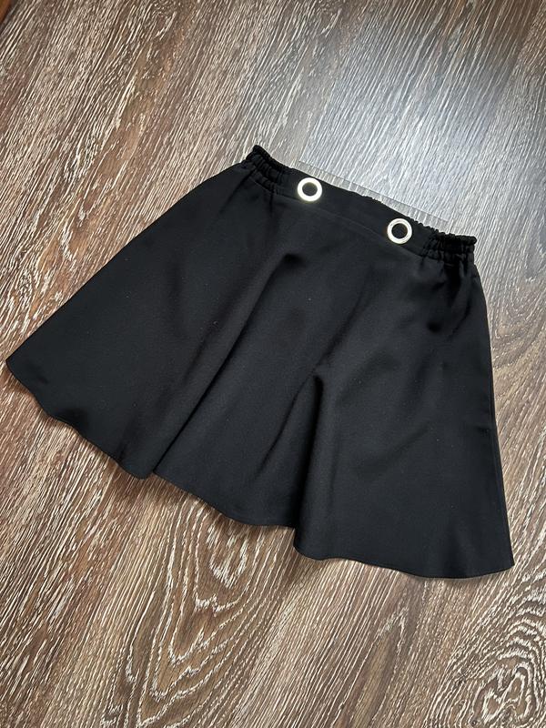 Спідничка чорна «сонце» для дівчинки. Пояс на резинці. Напівобхват талії 29 см (тягнеться до 38 см). Загальна довжина виробу 40 см. Поліестер.