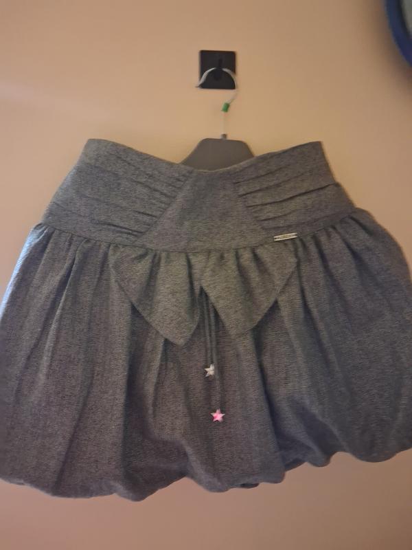 Юбки для девочек 140 -152 Серая из мягкой ткани с металлической нитью.на свету юбку смотриться серебристой. Коралловая -хлопок с укрепленным поясом и двустроронним ремешком и бабочкой.
