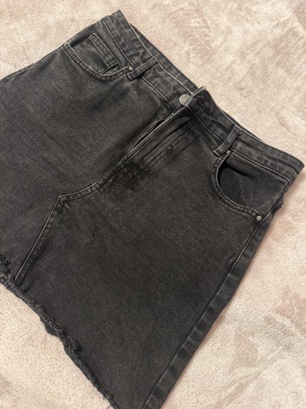 Чорна та коротка джинсова спідниця для жінок. Розмір 38