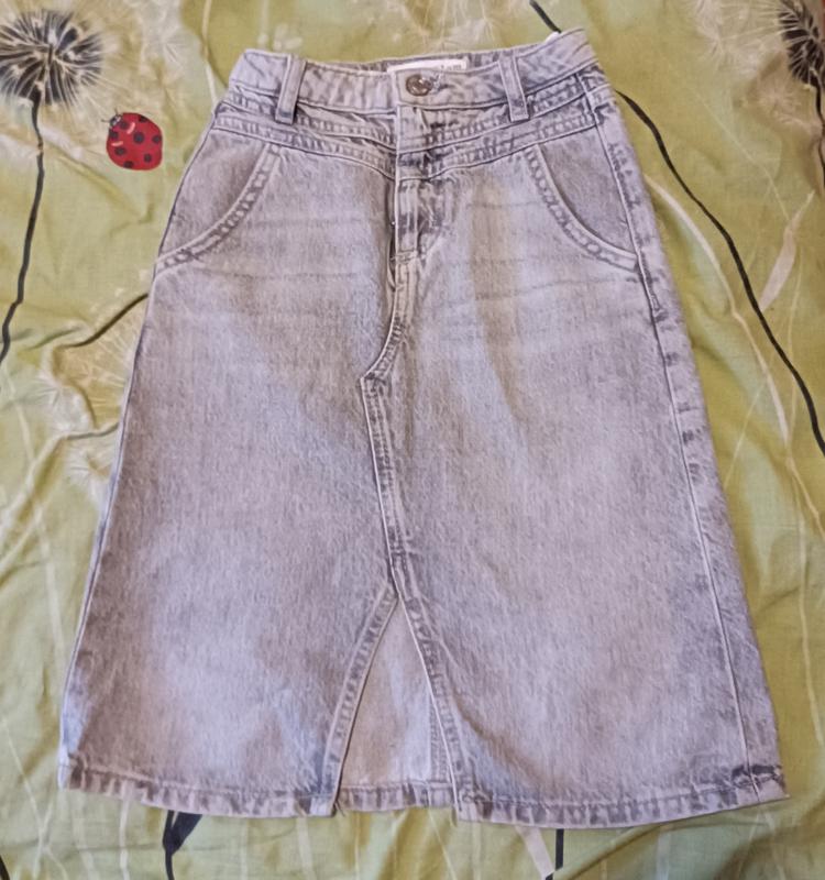 юбка за колени цвет бледно-серый впереди разрез есть утяжка 7-8 лет 122 -128 г замер на фото немного разошлась петля (смотрите последнее фото)