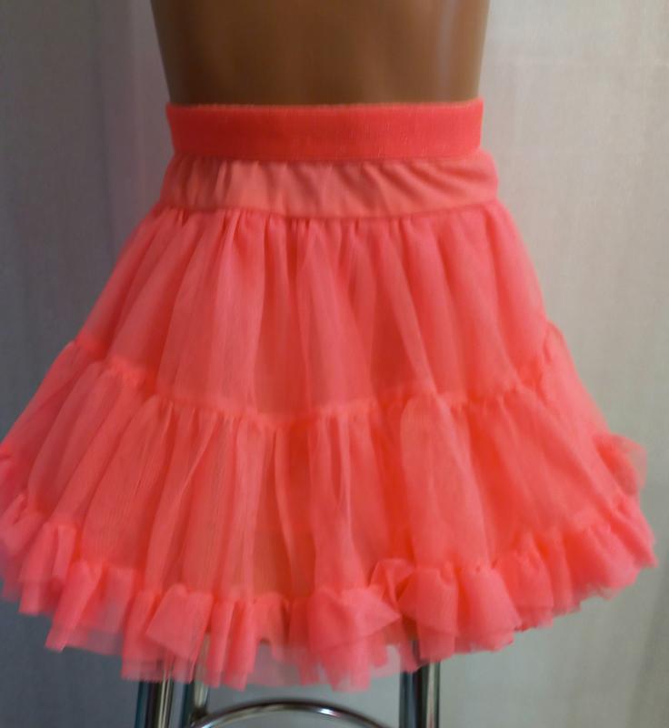 1. Нарядная фатиновая юбочка в идеальном состоянии.без нюансов. Верх- два слоя пишного фатина і х/б подкладка. Цвет коралловый. Указан размер: на 3-4 года /98-104. Реально подойдет и на 5 лет. Замеры: Длина 28 см. в поясе 24.5 см- на широкой резинке, хорошо тянется.