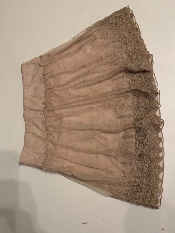 спідниця з натурального хлопку( Індія) з вишивкою на мʼякому фатині ніжного рожево-кремоватого кольору ф.Benetton на 10-11 років, зріст 150 , ціна 350 грн,