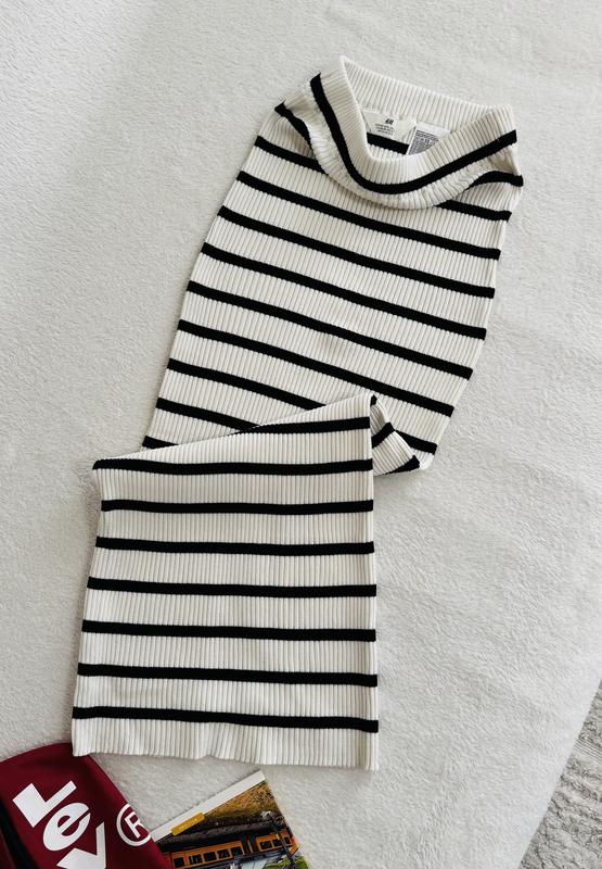 Вʼязана спідниця в смужку від H&M Розмір 12-13 р на зріст 158 см По поясу 27 см тягнеться до 40 см Довжина 85 см 70% віскоза, 30% поліамід