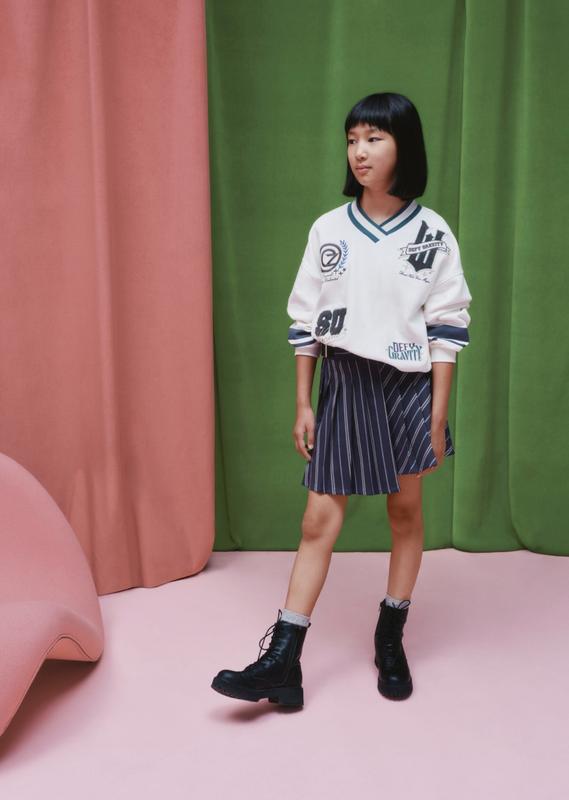 Продам спідницю для дівчинки 13-14 років. Колаборація M&S та Wicked. Стан на 5. Дуже стильна асиметрична спідниця в смужку, можна носити, як шкільну форму. Пояс зі вшитими резинками, що дозволяють корегувати ширину спідниці по талії. Смужки на спідниці з легким блиском. Зріст: 164 см. Обхват талії: 67 см. Довжина спідниці: довший край- 44см, коротший- 40см.