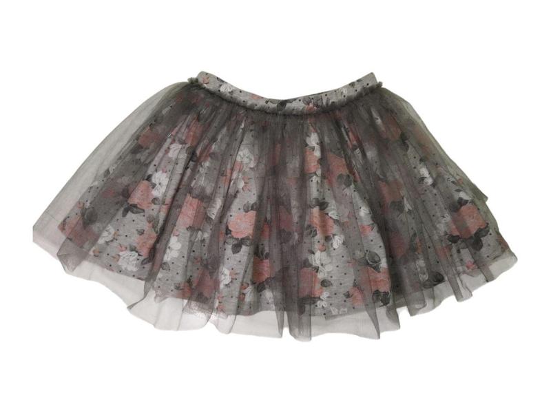 Хлопковая юбка для девочки с принтом роз, сверху фатин. Изделие на резинке. Состав: 100% полиамид подкладка: 57% хлопок, 38% полиэстер, 5% эластан