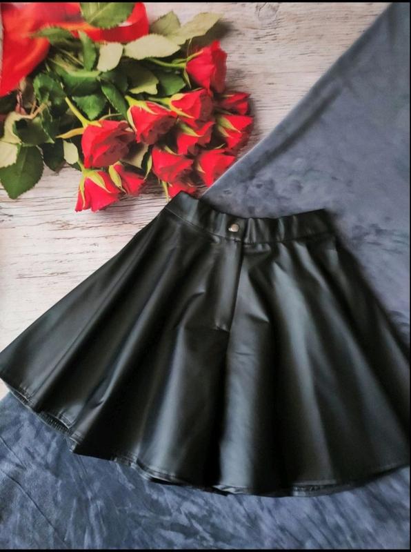✅️Шорти-спідниця з еко шкіри🥰 По переду мають змійку Гарна якість ⚫️КОЛІР ЧОРНИЙ 146-2 шт 💞146-довжина шорт 38,пояс 28 ЦІНА 780