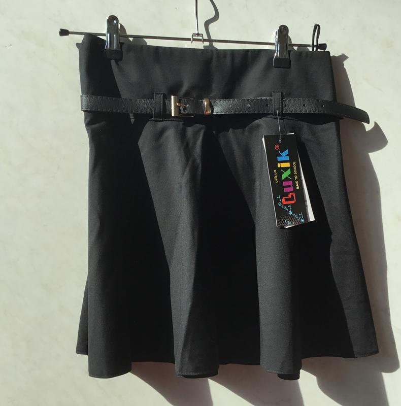 Красивая юбка солнце клёш для девочек, отличного качества, производства Украины, торговая марка Люксик, идеально подходит для весны и школы и под любой верх. Размер на рост 152-158, полномерная соответствует своему размеру, новая с биркой. Цвет чёрный.