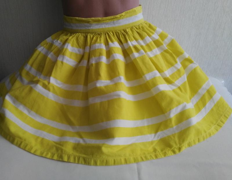 Натуральна, легенька як пушинка, підкладка теж тоненький котон. В ідеальному стані. На талії резиночка, не тисне але тягнеться добре. Довжина - 33см ПІТ-23см тягнеться до 33см