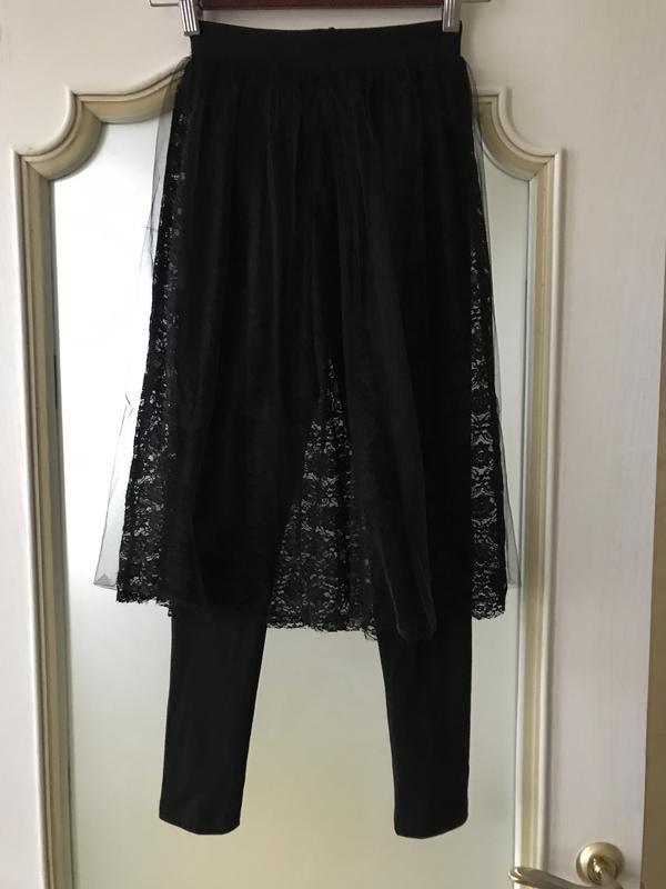 Модна гіпюрова спідничка, зверху один ярус фаті ну. Лосіни на ощуп мягусінькі, пояс- резинка.