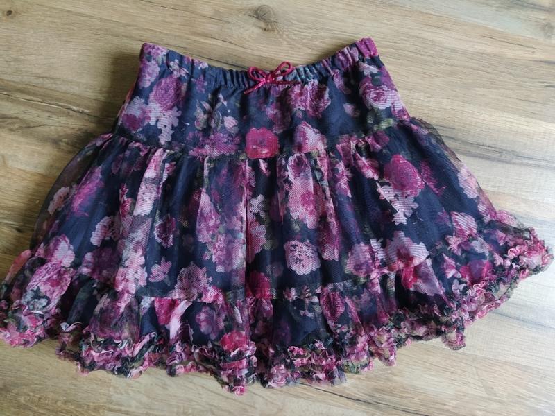 Юбочка на 7-8 лет!! Фатиновая лёгкая и пышная юбочка с красивыми цветами!! ( длина 36см, пот 28см + резиночка очень хорошо тянется)
