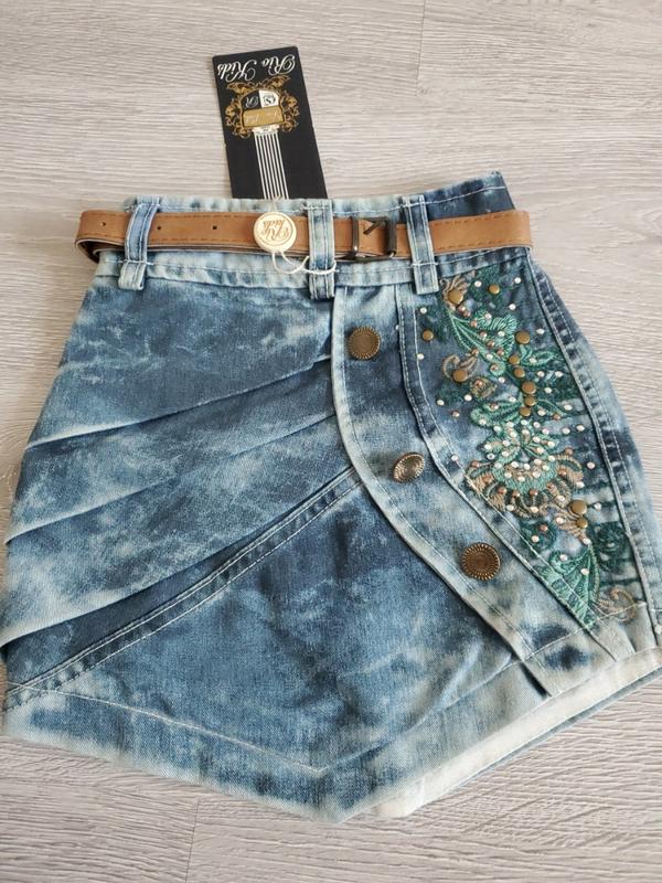 Нова джинсова спідничка Rio kids Туреччина Ширина поясу 22см,але ззаду є ризинка та пояс Довжина збоку 25см Довжина по середині 29см Оздоблена вишитим узором та камінцями.Дуже гарне пошиття та якість