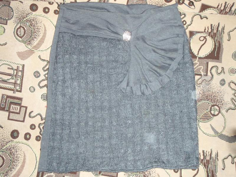 Юбка на флисе с красивой вязкой, украшением. Смотрится эффектно. Приятный серый цвет.