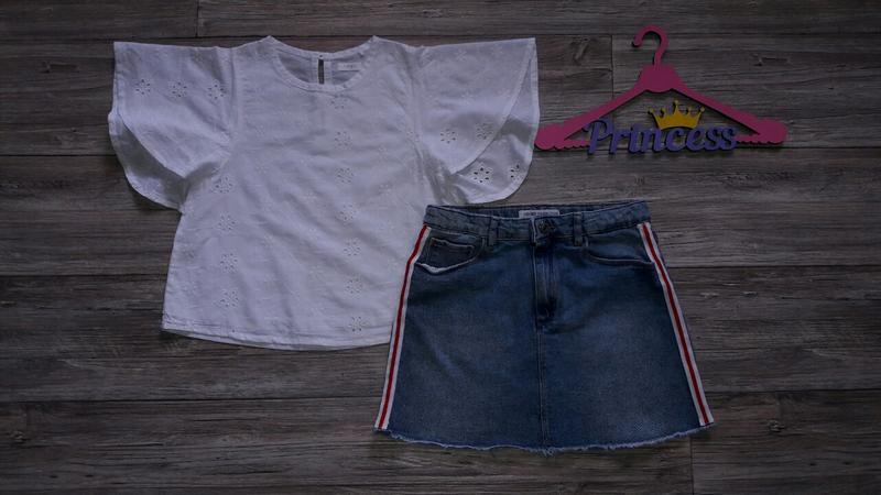 Стильная юбка с лампасами на р.140 Дефектов нет! Состояние отличное! Длина 32-32.5 ПОТ 30 + тянется, также есть резинка утяжка ПОБ 37-38