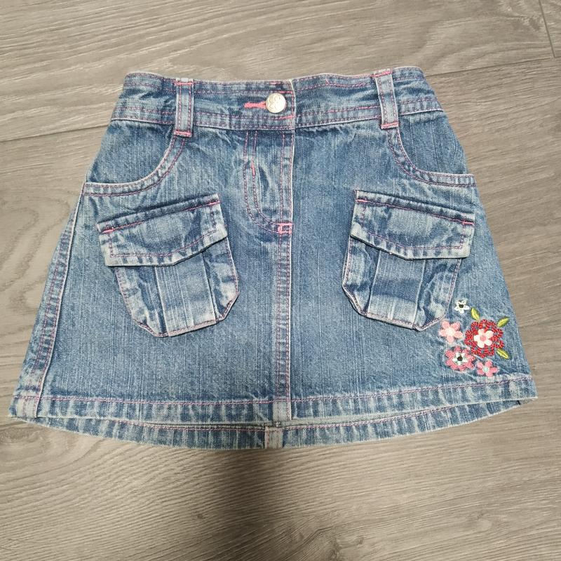 💥Одежда для девочек - https://shafa.ua/my/clothes?catalog=dlya-devochek 💥Весь ассортимент нашего магазина: https://shafa.ua/member/family-tex 💥Подпишись, что бы быть в курсе новинок и акций! ____________________________________________________________ Джинсовая очень класнючая юбочка для девочки, б/у, ТМ GEORGE, состояние отличное, но видно что была в стирке. На бирке значится возраст на 1-1,5 года на рост 81-86, но моя худенькая дочка носила ее в 5-6 лет при росте 110/116. Тоесть размер универсальный, ориентир на мерки. Форма - тропеция В поясе сзади вшита очень хорошая резинка для регулировки полноты Спереди 2 полноценных кармашка на липучках Сбоку вышивка - цветочки Мерки: Длина - 23 см сзади, 22,5 см спереди Ширина в поясе в нерастянутом виде - 22 см + тянется за счет резинки до 27 см Ширина по низу - 33,5 м