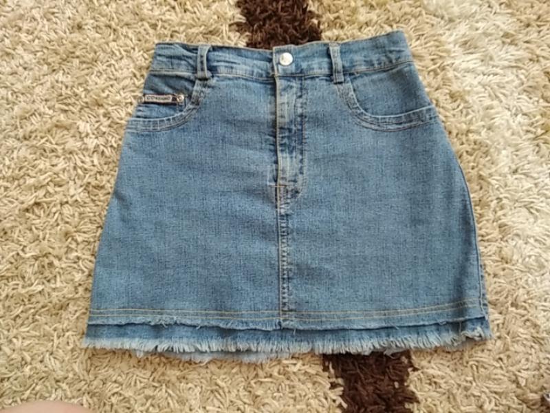 юбка джинсовая для прекрасной леди. Длина юбки 32 см. ОТ -29 см, в растянутом состоянии от-36 см. отправляю УкрПочтой отвечу на все интересующие вас вопросы дочь уже выросла из этой юбки.