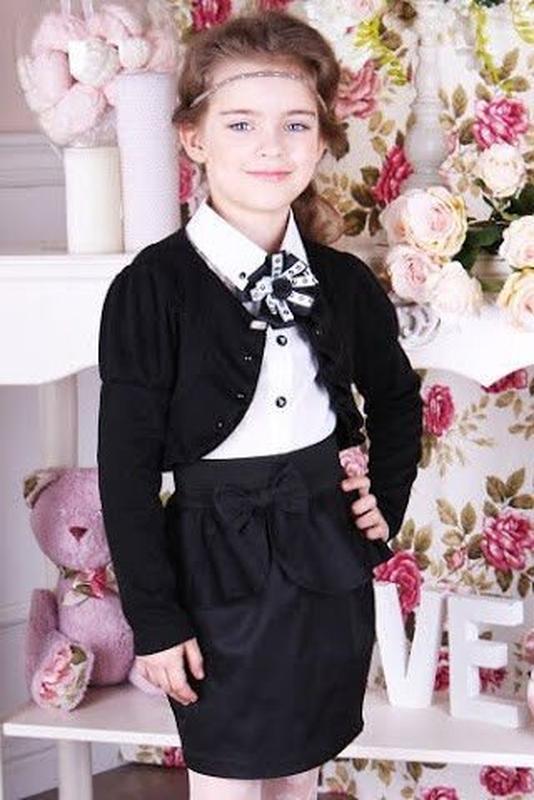 Эта изумительно красивая и практичная юбка обязательно должна присутствовать в гардеробе модной школьницы. Практичная ткань удобна в носке – она не мнется и легко чистится. А благодаря баске строгая прямая юбка приобретает нестандартный вид и скроет недостатки фигуры. В данной модели нашел отражение хит нынешнего сезона – неполная баска. Так, элегантный широкий волан баски облегает фигуру по периметру и расходится спереди, образуя округлые края, которые напоминают плавный разрез. Место соединения волана украшает однотонной бант, пришитый по центру переда юбки, на талии. Пояс выполнен из широкой резинки и хорошо тянется. Поэтому он не только удобен при надевании/снятии юбки, но и подойдет на любую фигуру, как для худеньких девочек, так и для маленьких «пышечек». Материал: ткань – Memory коттон; пояс – резинка Размеры -116,134,146,152 Отшивается в черном цвете