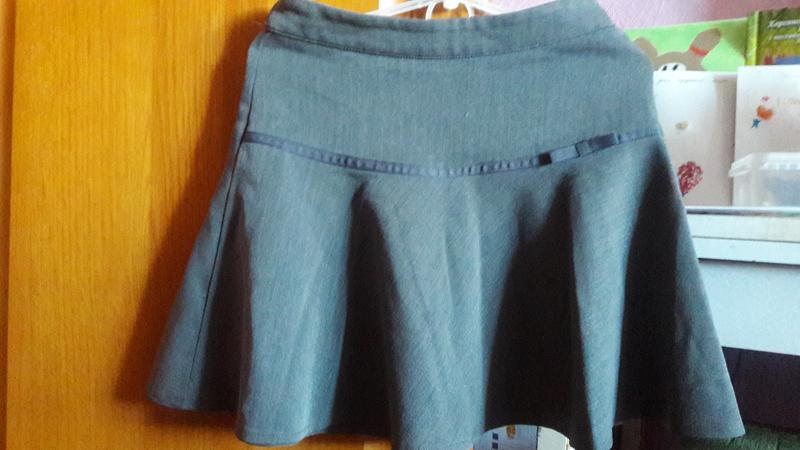 Серая юбочка в школу. Замеры: ширина в поясе 29 см (есть кулиски), длина 33 см.