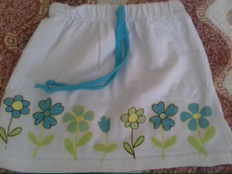 Спідниця для дівчинки, як нова, одягалася пару раз...не синтетика, на поясі регулюється гумкою і зав'язками, довжина - 25 див. Відмінний варіант для літнього відпочинку!)