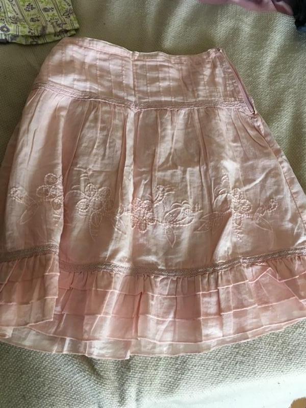 Benetton юбка на девочку летняя льняная , нарядная , с вышивкой, на 140-147 см нежный пудровый цвет