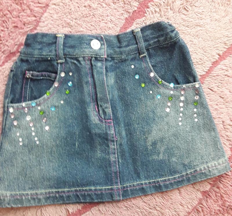 Джинсовая детская юбка со стразами.
