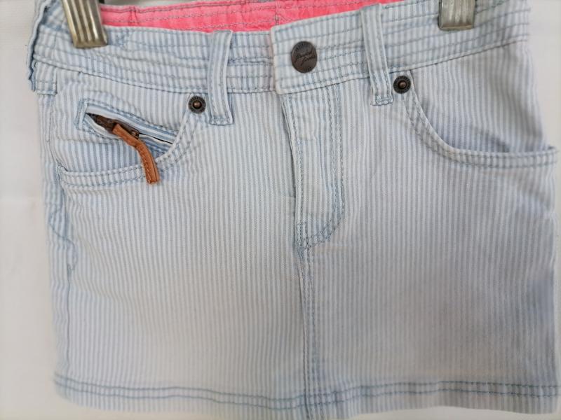 Интересная юбочка, джинс со стрейчем. Размер 1,5 _2,замеры по талии 25, бедра 29, длина 23.