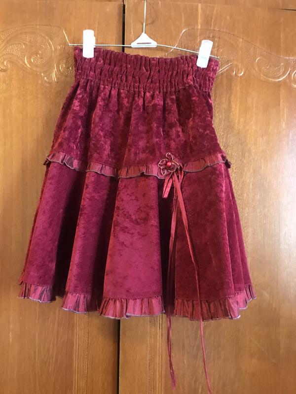 Для дівчинки 7-9 років. Тканина вельвет. Пояс - гумка. Декор - квіточка з намистинкою. Недолік - декоративний шнурочок трохи потертий, а загалом стан дуже хороший.