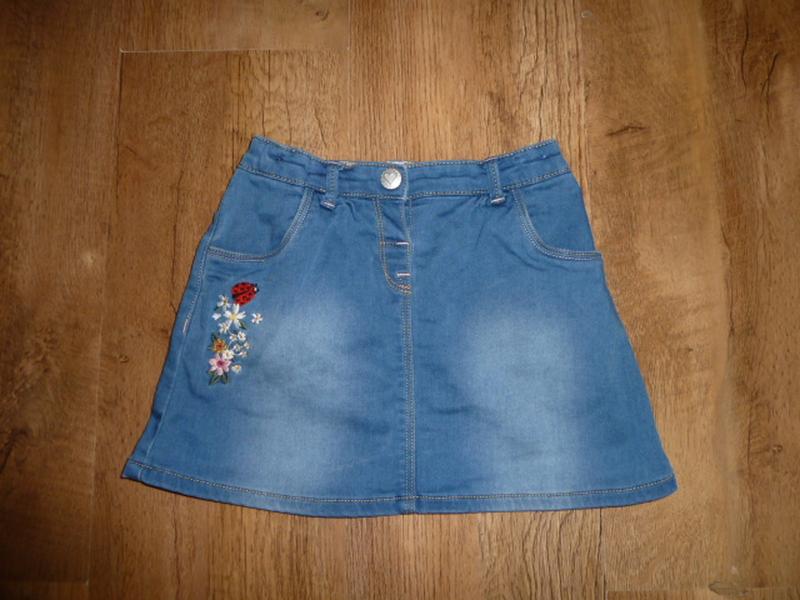 Джинсовая юбка на 3-4 года Nutmeg (трикотаж) длина 26, ПОТ 24,5 (регулируется), ПОБ 33 отличное состояние