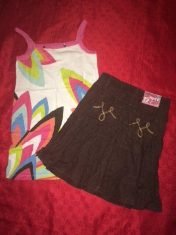 Юбка Next по бирке 11 лет. Мелкий вельвет. Два кармана по бокам и два сзади. Очень крутая юбка, состояние идеальнейшее. Замеры: длина 45 см, в поясе 32 см. Сарафан Marks&Spenser ( в подарок ) по бирке 10 лет. Замеры: длина 66 см, ширина в груди 35 см, ширина снизу 45 см. 100% катон .