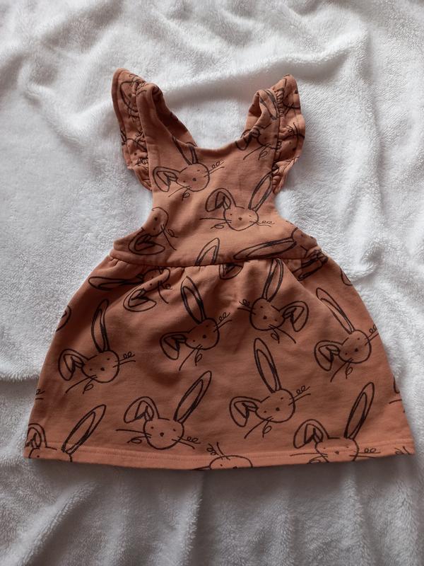 Теплий сарафан зі зайчиками пудрового кольору