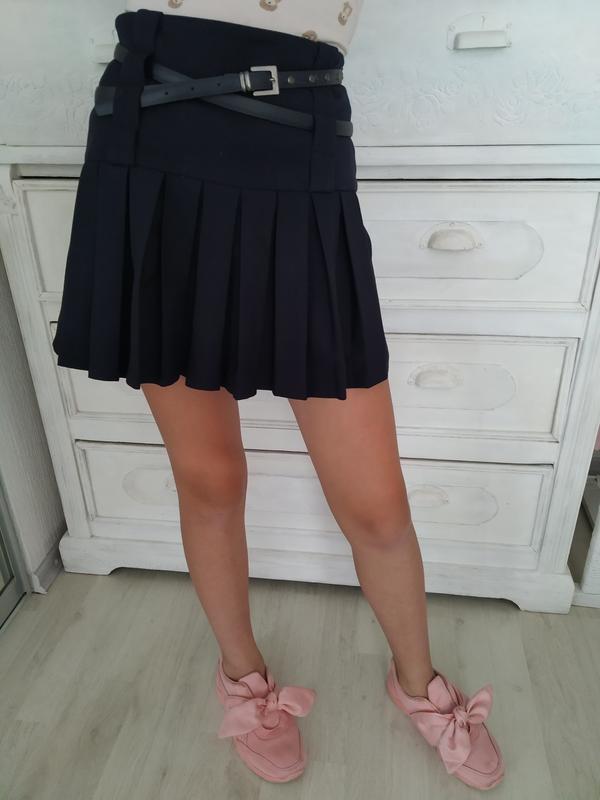 Юбочка в складку на кокетке с затейливым ремешком. Юбочка глубоко- синего цвета. Качество ткани классное. Замеры: длина-36 пОт-31