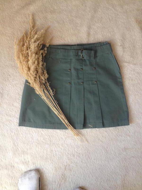 Юбка в идеальном состоянии. Без повреждений. Очень хорошая ткань - 100% коттон. Отличный цвет милитари - один из главных трендов осени 2017. Длина юбки: 38.5 см; Объем в талии: 67 см