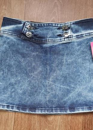 Юбка джинсовая для девочки. Новая. Размер на бирке 116. ПОТ - 28 см, длина - 27,5 см. Сзади резинка.