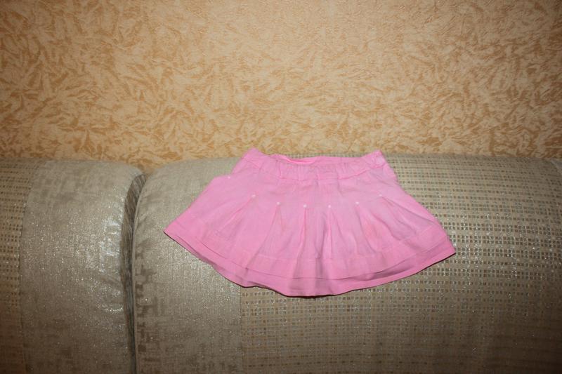 Красивая розовая юбка девочки 3-4 лет. Пошита из хлопковой ткани. Отличное состояние, без дефектов. По талии есть резинка-утяжка. Юбка красивая, красивый фасон, будете довольны, дочь носила с радостью. Замеры: длина 24см, ПИТ 26см (есть стяжка), ПОБ 38см.