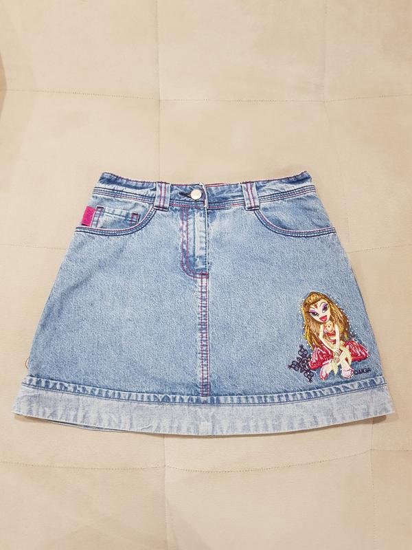 Чудова джинсова спідниця Bratz на дівчинку на зріст 134 см, 8-9 років. Носила донька. Продаю, бо стала малою. Довжина спідниці 32 см, ПОТ 29 см. Склад 100% cotton.