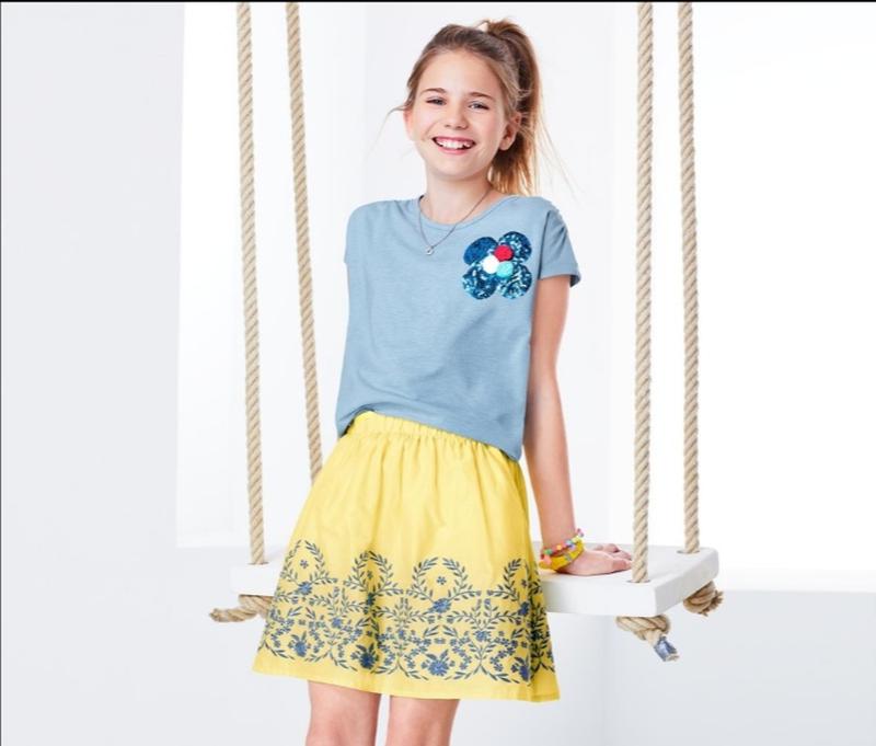 Эта яркая юбка подарит отличное настроение: она изготовлена из чистого, удобного для кожи хлопка, а эластичный пояс обеспечивает идеальную посадку. Вышивка растительным орнаментом придает юбке неповторимый причудливый акцент. Цвет: жёлтый материал: 100% хлопок (органическое земледелие) ********************************** р. 146/152 Пот 32 (тянется до 38) Длина: 44 см Бирки частично срезаны. Абсолютно новая одежда. Сток. Бирки заставляет срезать сам Бренд при отправке непроданной одежды на рынки других стран. Отправка УП, НП, Jastin, Meest. Оплата на карту Приват, Монобанк. Безопасная Оплата. В наличии 3 шт.