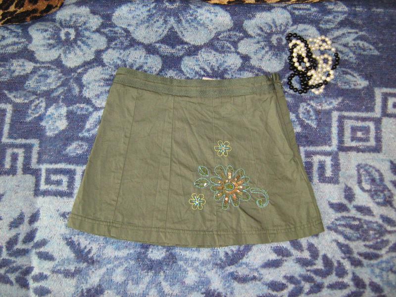 Юбка коттоновая Сбоку потайная змейка. Длина юбки 27 см, полуобхват талии 28 см, полуобхват бедер 34 см цвет темно-зеленый