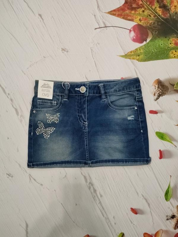 Джинсовая юбка для девочки OVS рост 122 6-7 лет. В переди и сзади карманы, застёжка пуговица и молния, ткань стрейч. Материал 98% cotton, 2% elastane. В наличии. Отправка новой почтой и укр почтой. Длина 24 см, ПОБ 33 см, ПОП 29 см.
