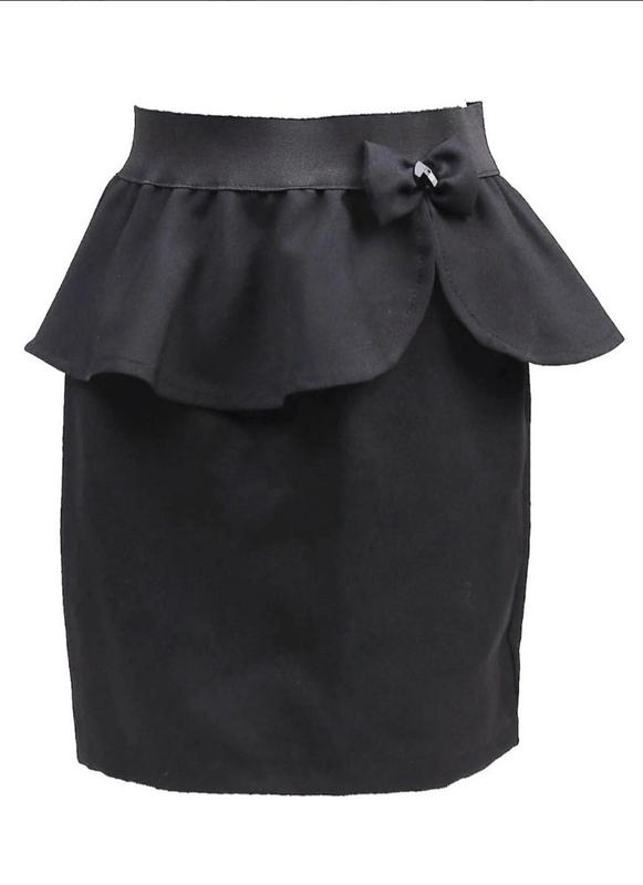 Игривая юбка с баской для девочки !!! Подходит для прогулки,праздника. Украшена бантиком и черным камешком -стразой . Цвет:чёрный Состав: 100 % полиэстер Размер :116 см (5-6 лет) Длина 34 см , от 52-58 ,об 58 -62 см