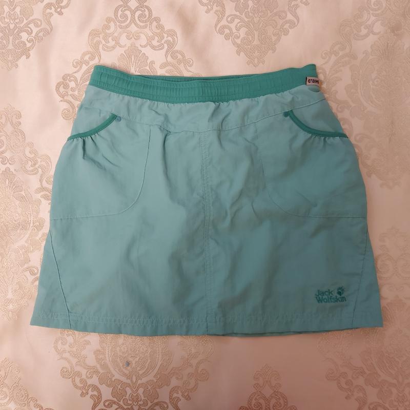 Очень стильная и удобная юбка-шорты в берюзовом цвете. На талии резинка и есть верёвка. Состояние идеальное. Замеры на фото. Дефектов нет.