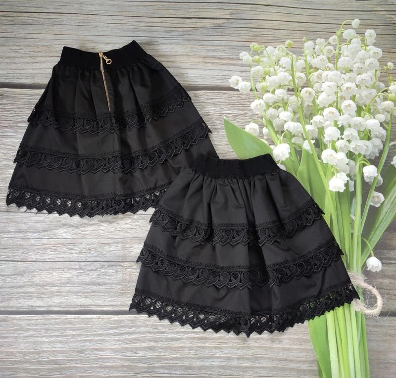 🔥НОВА ЦІНА 295 грн🔥 Красивая юбочка ткань костюмка украшена густым кружевом в поясе резинка 128(1 шт)-длина 40,пояс 22 134(1 шт)-длина 42,пояс 23