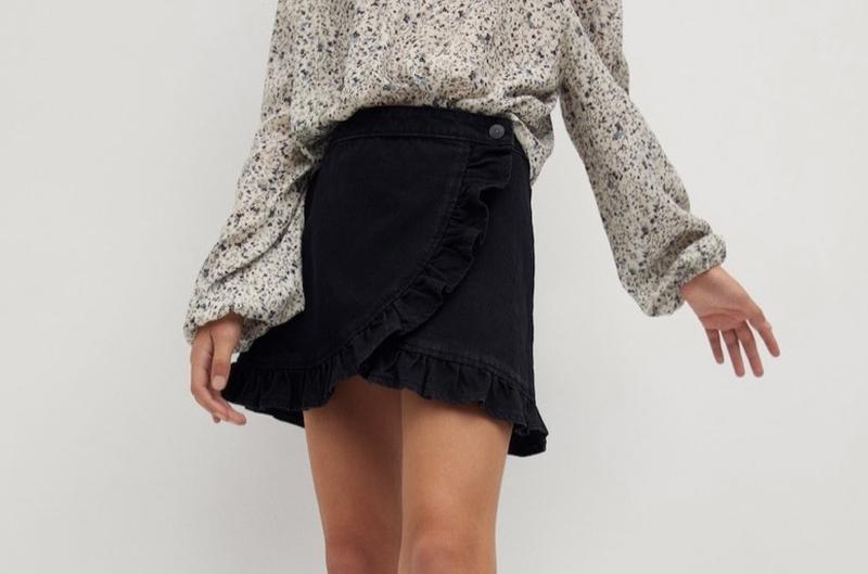 Продам прикрий проліт з Mango. Джинсова спідниця. Ідеально на худеньку дівчинку. Ширина в поясі 28,5, довжина 30. Пуговичку можна переставити, юбка на запах