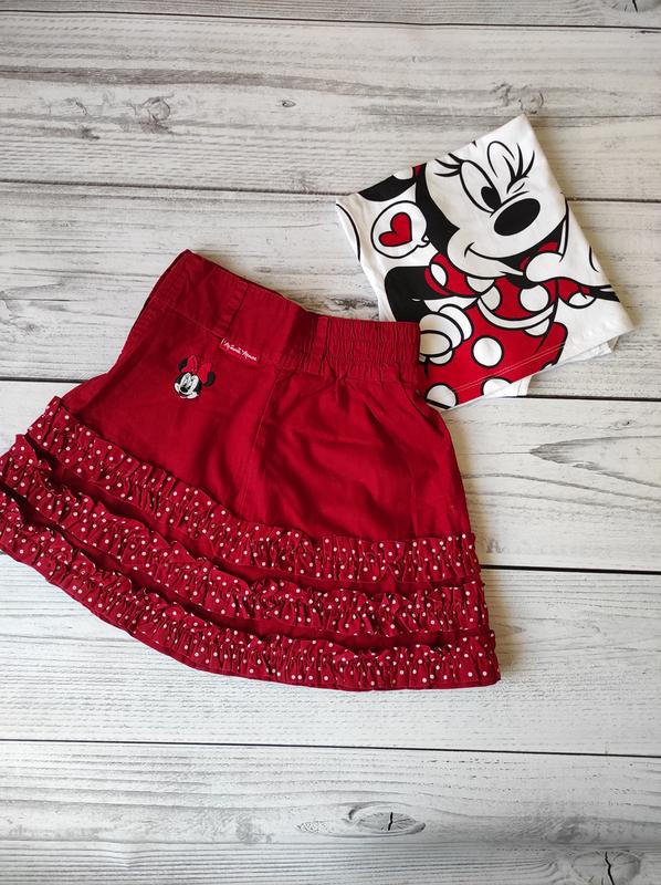 Стильная юбка из Минни Маус, молния спереди. H&М, 5-6л, 116. Замеры: пот 26 см, пос 38 см, по низ 50 см, длина 34 см.